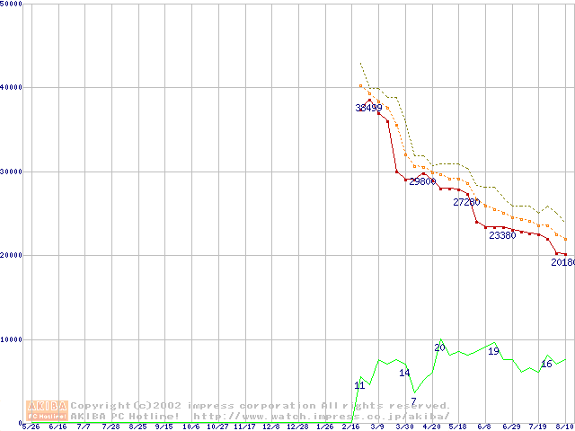 Socket A (Palomino,OPGA,FSB 266MHz,L2 256KB)の最安値推移
