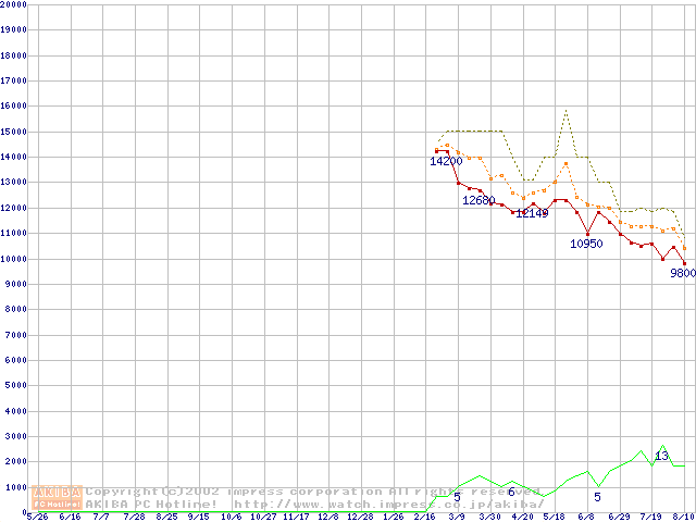 MHRシリーズ (9.5mm,4200rpm,UltraATA/100,2MB,20GB/プラッタ,流体軸受)の最安値推移