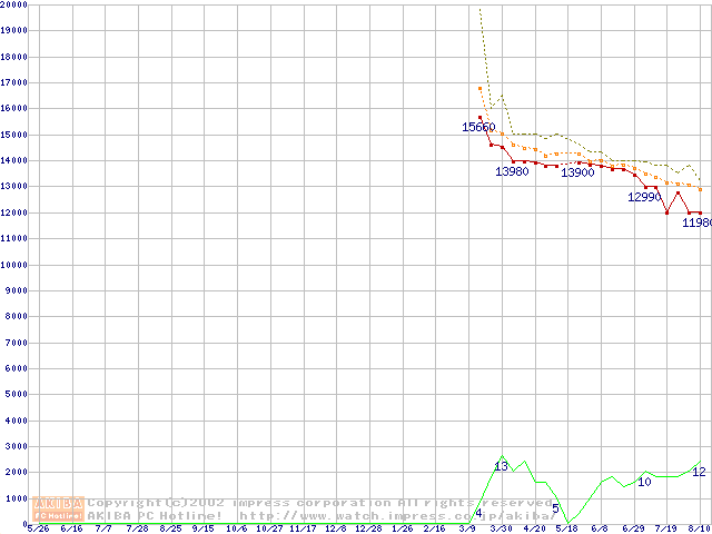 MHRシリーズ (9.5mm,4200rpm,UltraATA/100,2MB,20GB/プラッタ,流体軸受)の最安値推移