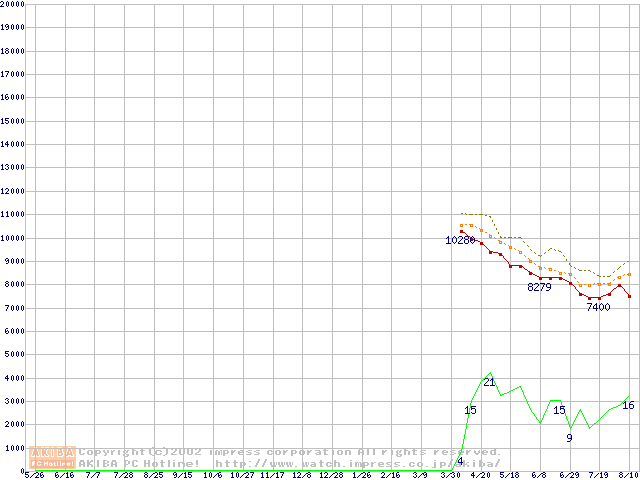 Deskstar 120GXP (7200rpm,UltraATA/100 2MB)の最安値推移