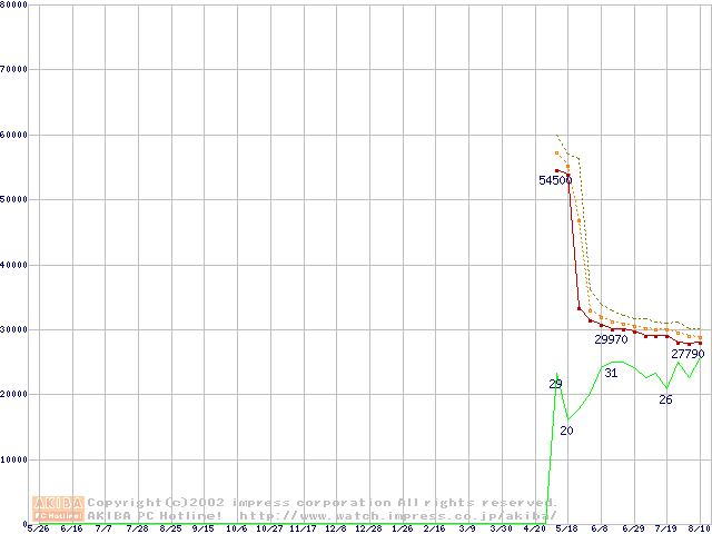Pentium 4 2.26GHz リテールパッケージの価格推移