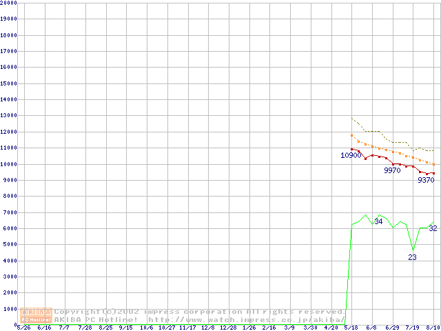 Socket 478 (micro-PGA,FSB 400MHz,L2 128KB,Willamette)の最安値推移
