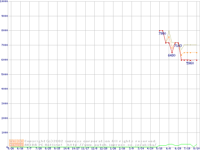 PC3200(DDR400) DDR SDRAM DIMMの最安値推移