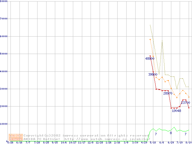 PC3200(DDR400) DDR SDRAM DIMMの最安値推移