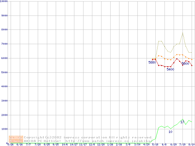 PC800-40 DRDRAM RIMMの最安値推移