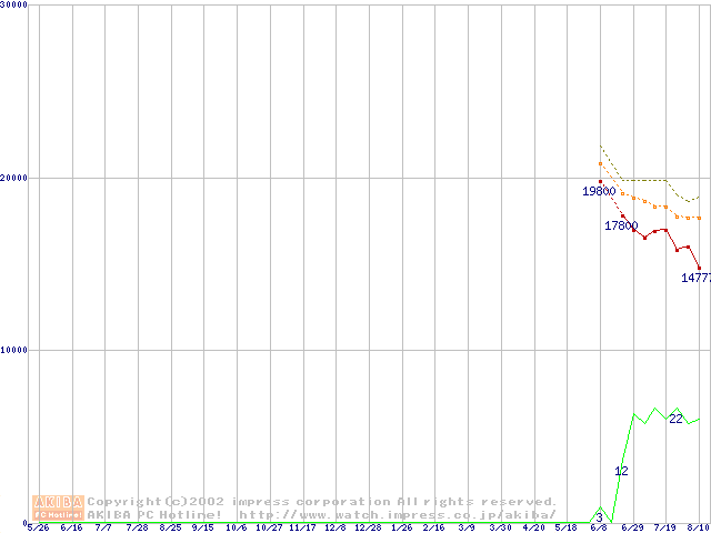 メモリ主要製品(最安値1万円以上)の最安値推移