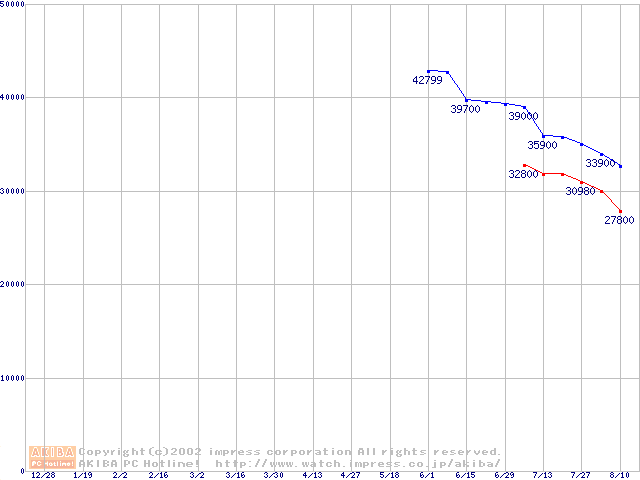 | [↑前グラフ]: | Travelstar 15GN (9.5mm,4200rpm,UltraATA/100,512KB,流体軸受)の最安値推移 |