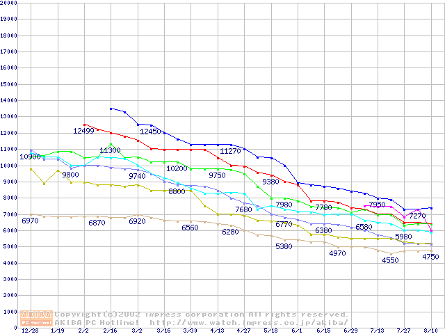 | [↓次グラフ]: | Socket A (Spitfire,PGA,FSB 200MHz,L2 64KB)の最安値推移 |