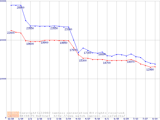 | [↑前グラフ]: | Socket 370 (FC-PGA2,FSB 133MHz,L2 512KB)の最安値推移 |
