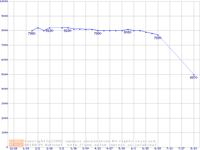 | [↓次グラフ]: | WD Caviar(Special Edition) (7200rpm,UltraATA/100,8MB)の最安値推移 |