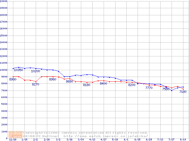 | [↑前グラフ]: | WD Caviar (5400rpm,UltraATA/100)の最安値推移 |