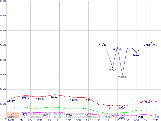 PC2100(DDR266) DDR SDRAM DIMM(CL 2.5)の最安値推移