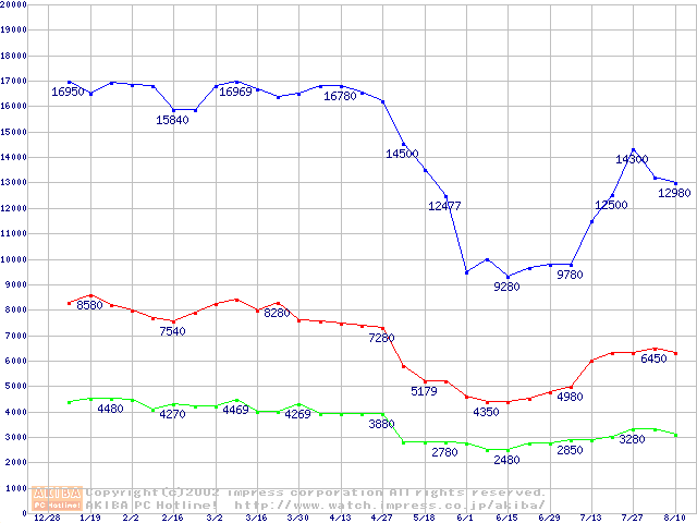 | [↓次グラフ]: | PC2700(DDR333) DDR SDRAM DIMMの最安値推移 |