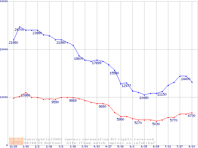 | [↓次グラフ]: | PC3000(DDR366) DDR SDRAM DIMMの最安値推移 |