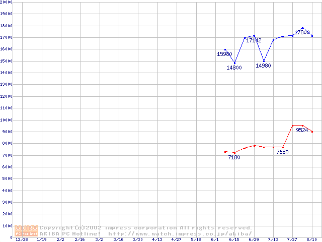 | [↓次グラフ]: | PC2100(DDR266) DDR SDRAM DIMM ECC対応の最安値推移 |