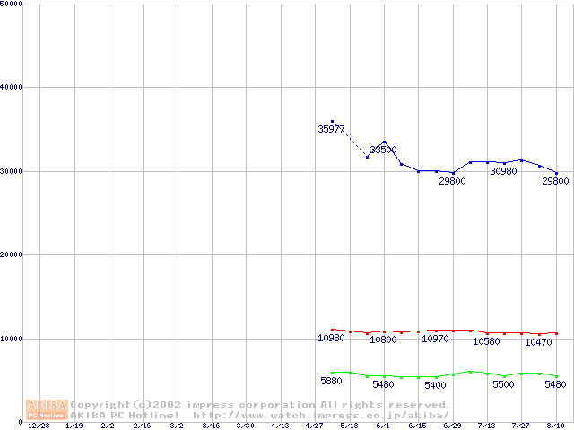 | [↑前グラフ]: | PC800-45 DRDRAM RIMMの最安値推移 |