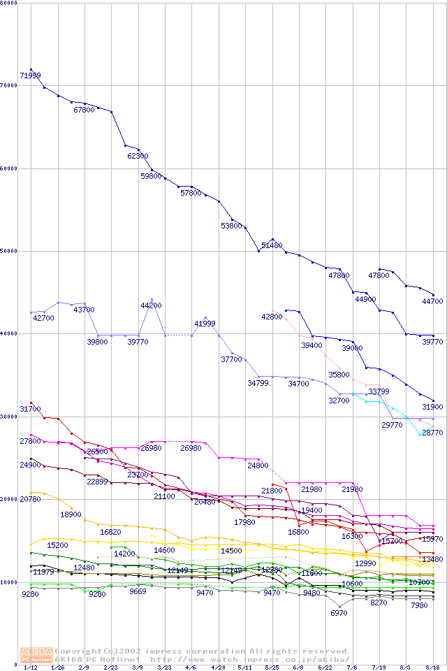 2.5インチHDD主要製品の最安値推移