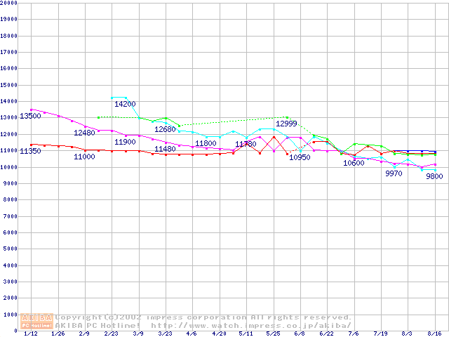 | [↑前グラフ]: | 2.5インチHDD 10GB~20GB未満(9.5mm厚)の最安値推移 |