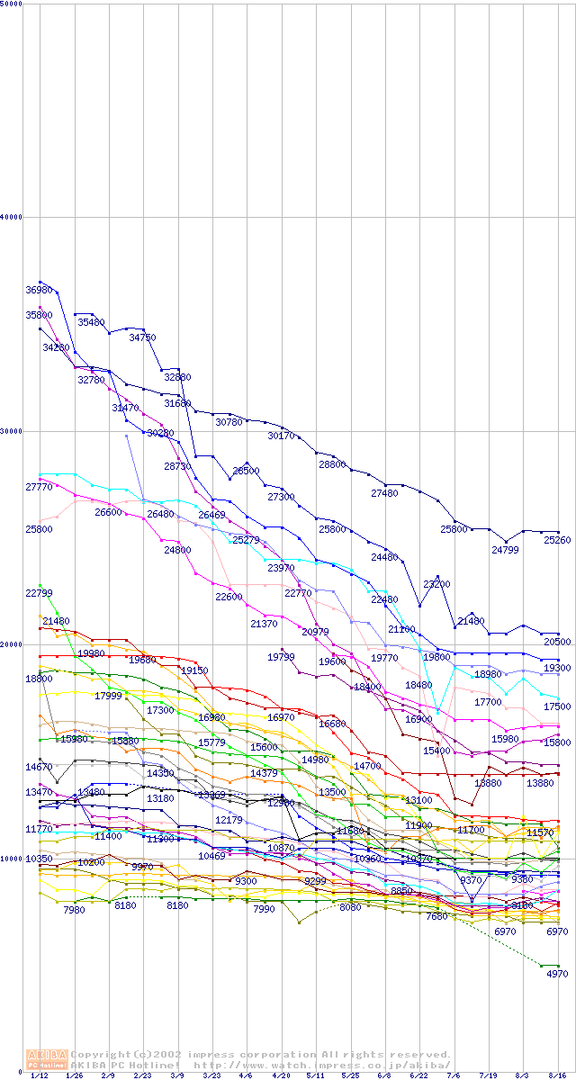 Slot 1・FSB 100MHzの最安値推移