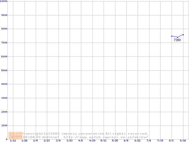 | [↑前グラフ]: | HDD 20GB~30GB未満(5400rpmクラス)の最安値推移 |