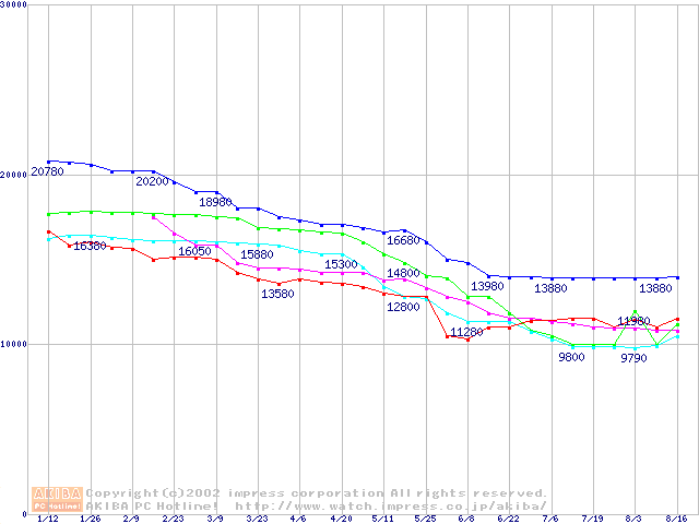 | [↓次グラフ]: | HDD 100GB以上(5400rpmクラス)の最安値推移 |