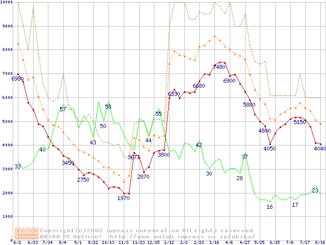 PC133 SDRAM DIMM CasLatency=2の最安値推移