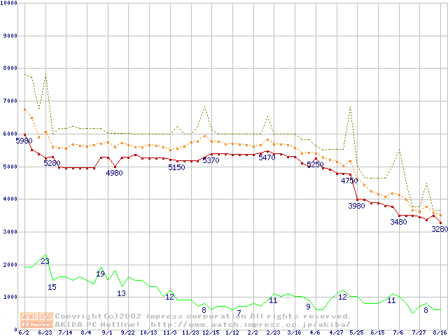 Socket A (Spitfire,PGA,FSB 200MHz,L2 64KB)の最安値推移