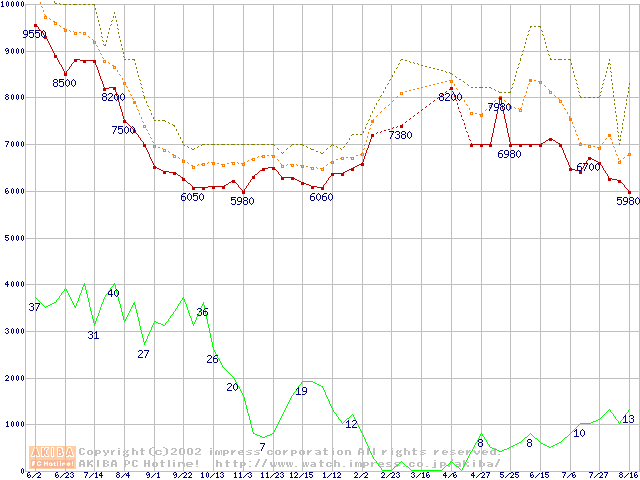 Celeron 800MHz FC-PGA リテールパッケージの価格推移