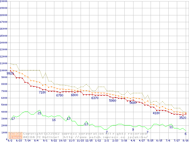 Socket A (Spitfire,PGA,FSB 200MHz,L2 64KB)の最安値推移