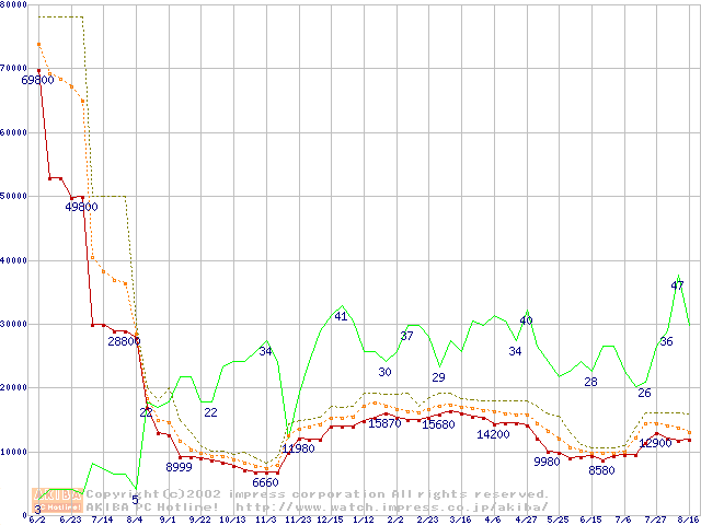 メモリ主要製品の最安値推移