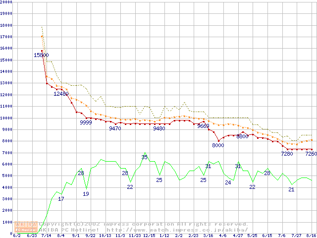 U6 (5400rpm,UltraATA/100 2MB 40GB/Platter)の最安値推移