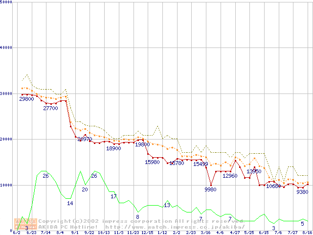 Socket A (Palomino,PGA,FSB 266MHz,L2 256KB)の最安値推移