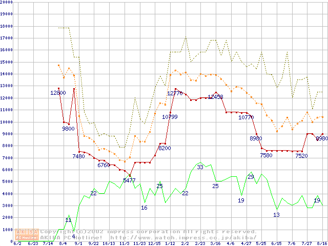 メモリ主要製品の最安値推移