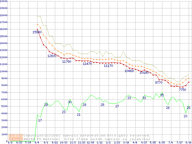 Barracuda ATA IV (7200rpm,UltraATA/100,2MB,40GB/Platter,流体軸受)の最安値推移