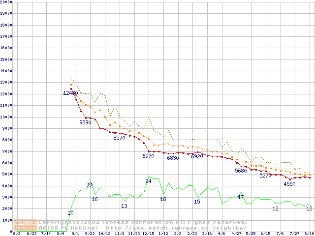 Socket A (Morgan,PGA,FSB 200MHz,L2 64KB)の最安値推移