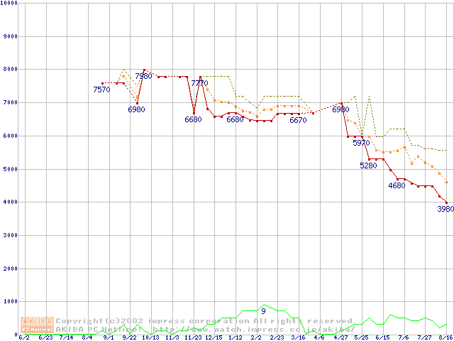 Socket 370 (PGA,FSB 133MHz,L2 64KB)の最安値推移