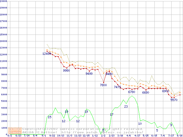 Duron 1GHz リテールパッケージの価格推移