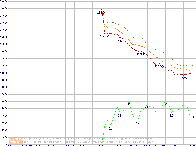 DiamondMax Plus D740X (7200rpm,UltraATA/133,40GB/Platter,流体軸受)の最安値推移