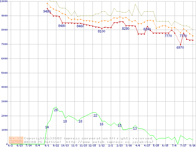 Celeron 950MHz FC-PGA リテールパッケージの価格推移