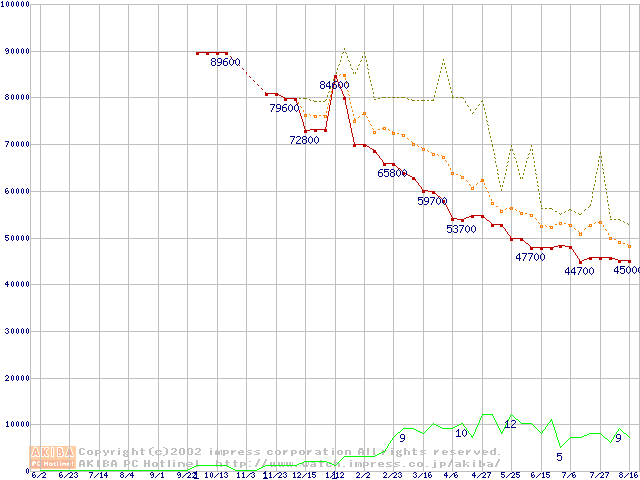 PC2100(DDR266) DDR SDRAM DIMM ECC対応 Registeredタイプの最安値推移