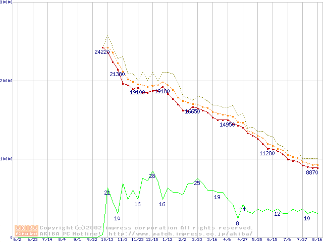 Socket A (OPGA,FSB 266MHz,L2 256KB)の最安値推移