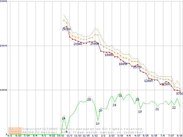 Athlon XP 1700+ (1.47GHz) リテールパッケージの価格推移