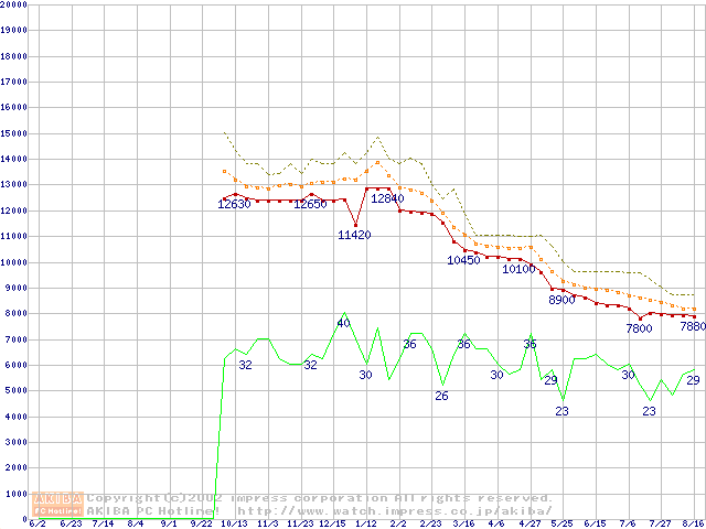 Celeron 1.20GHz FC-PGA2 リテールパッケージの価格推移