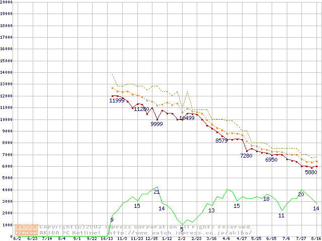 Duron 1.1GHz リテールパッケージの価格推移
