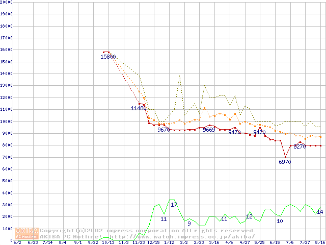 Travelstar 15GN (9.5mm,4200rpm,UltraATA/100,512KB,流体軸受)の最安値推移