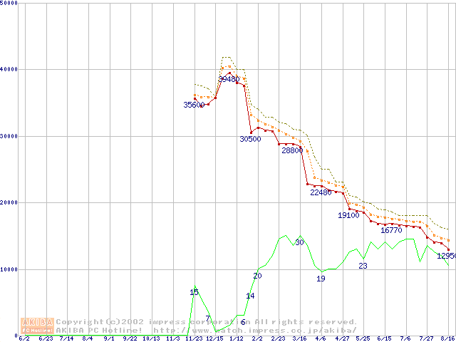 Athlon XP 1900+ (1.6GHz) リテールパッケージの価格推移