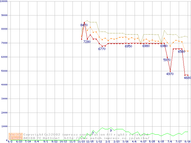 Socket 370 (PGA,FSB 133MHz,L2 64KB)の最安値推移