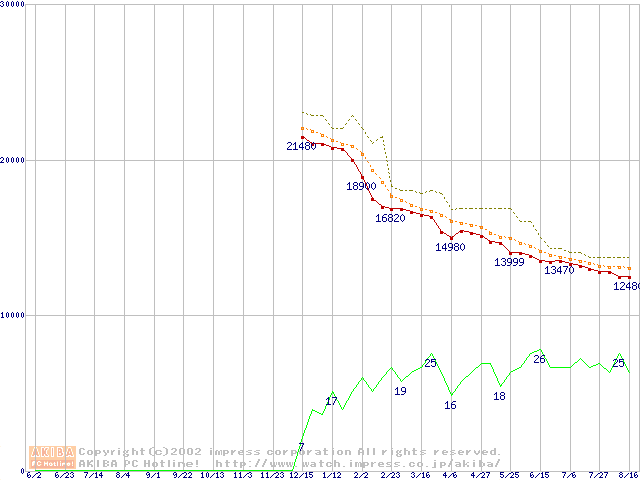 Travelstar 40GN (9.5mm,4200rpm,UltraATA/100,20GB/Platter,2MB,流体軸受)の最安値推移