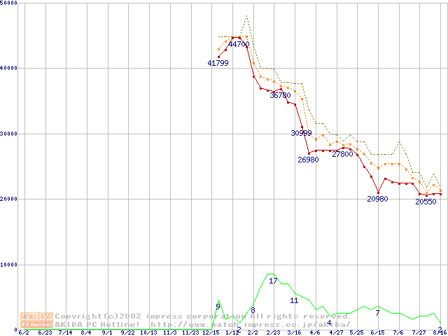 Socket A (Palomino,OPGA,FSB 266MHz,L2 256KB)の最安値推移