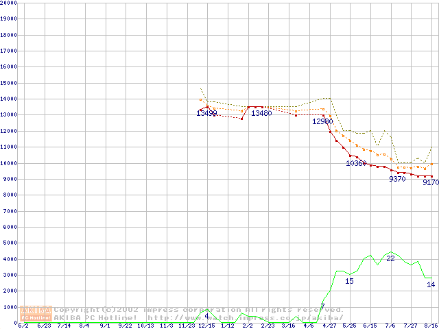 DiamondMax D540X (5400rpm,UltraATA/100,40GB/Platter,流体軸受)の最安値推移